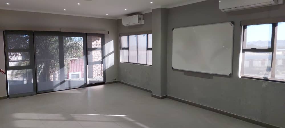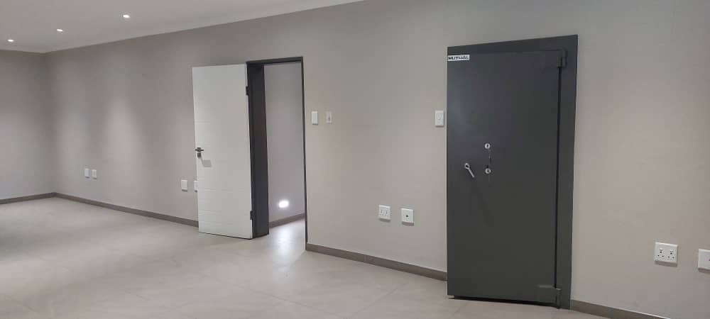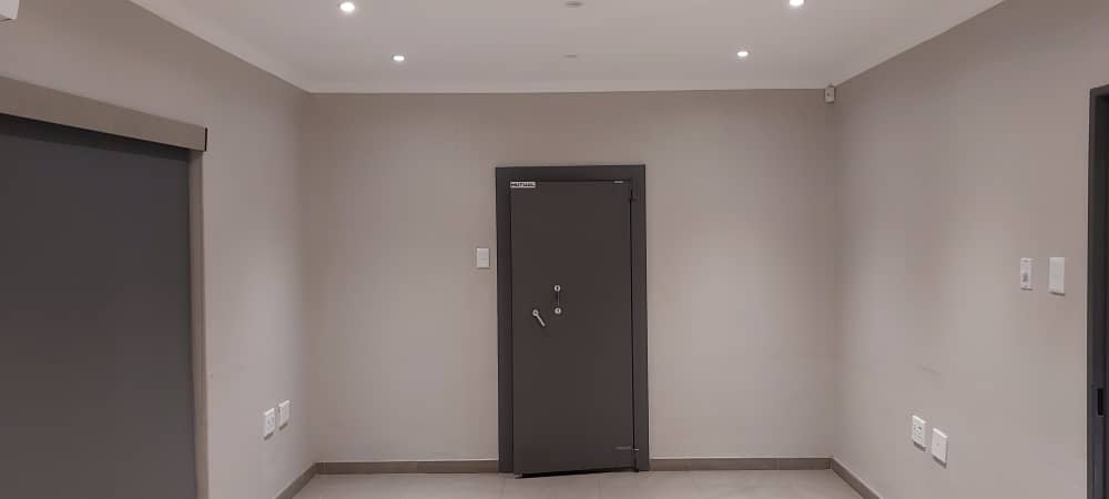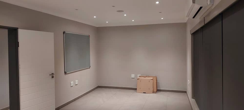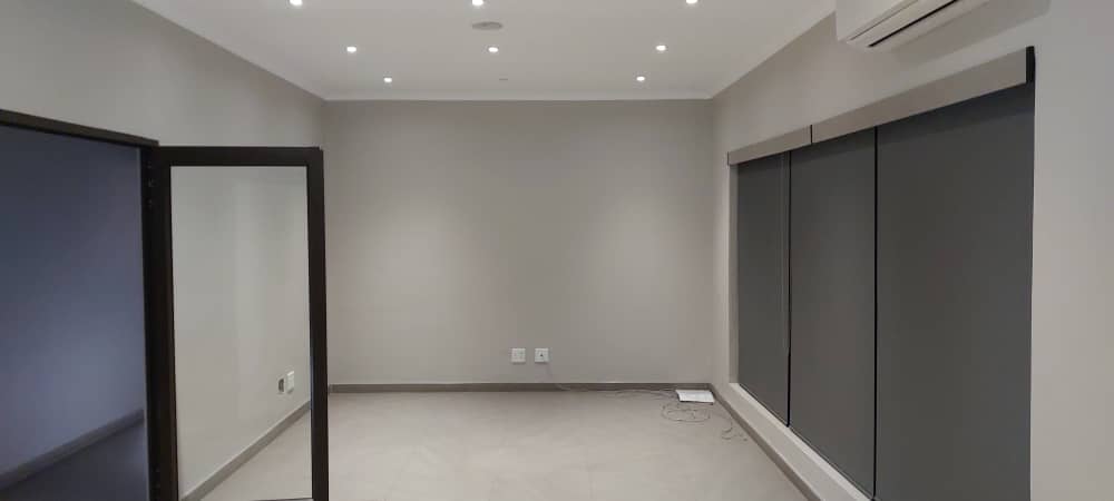 Step into the ground floor through a welcoming covered front entrance into a reception and waiting area. This level is equipped with four air-conditioned offices, a secure vault for valuables, and two sets of ablution facilities. A fully fitted air-conditioned kitchen is also available for staff use, enhancing daily convenience.