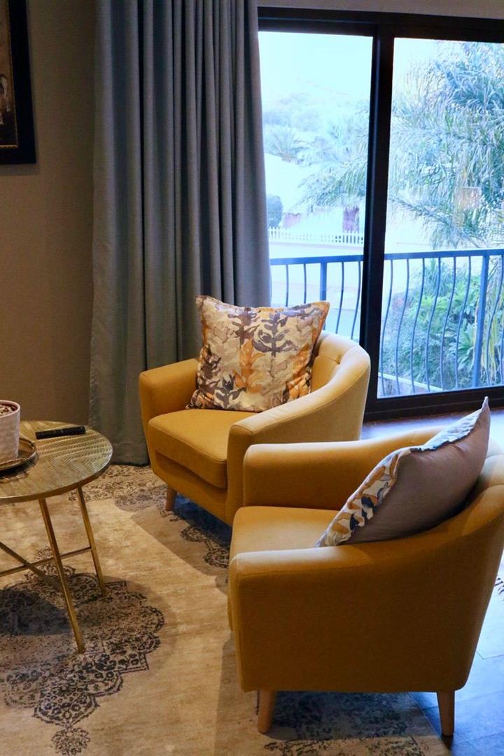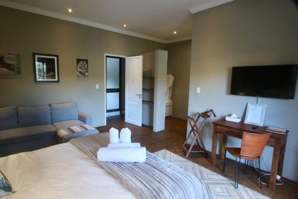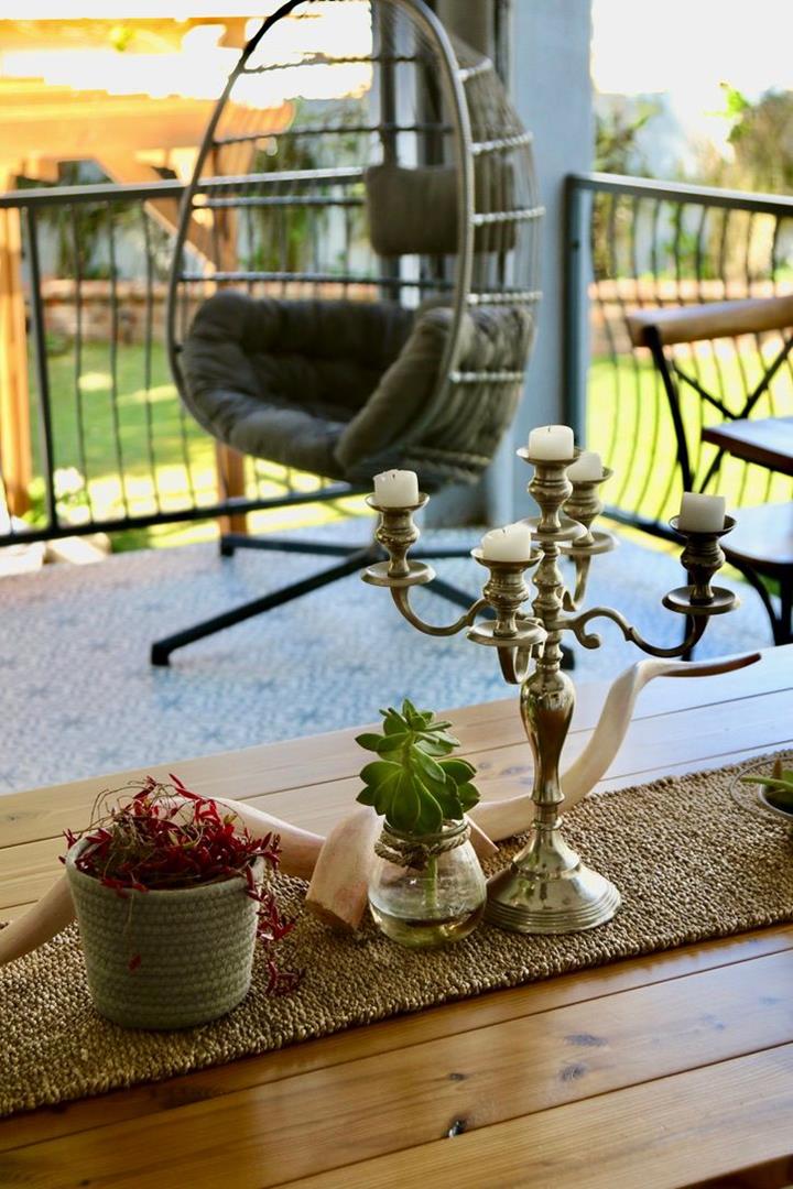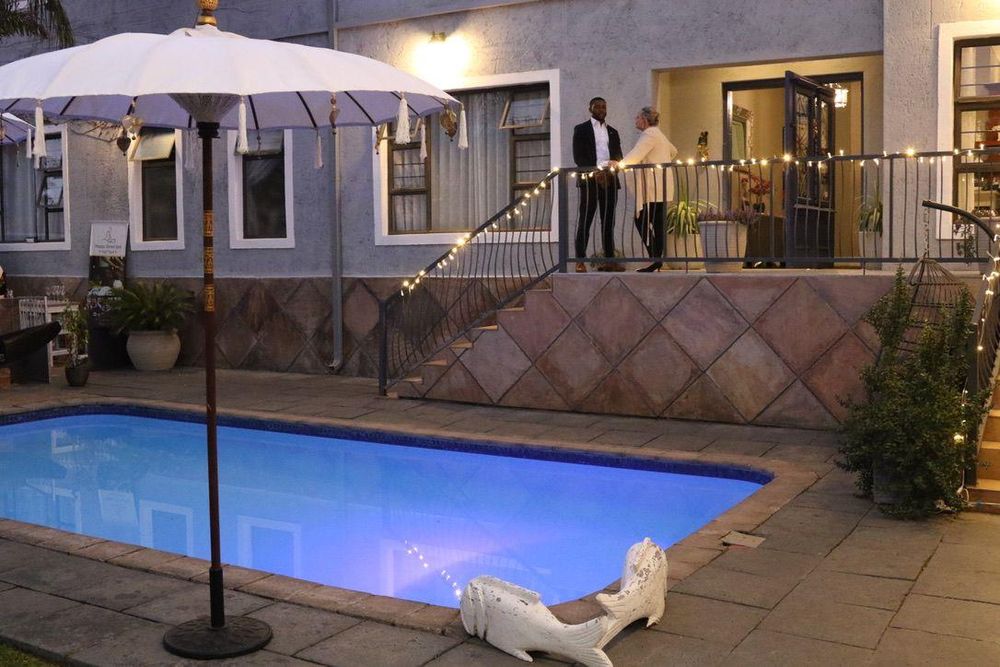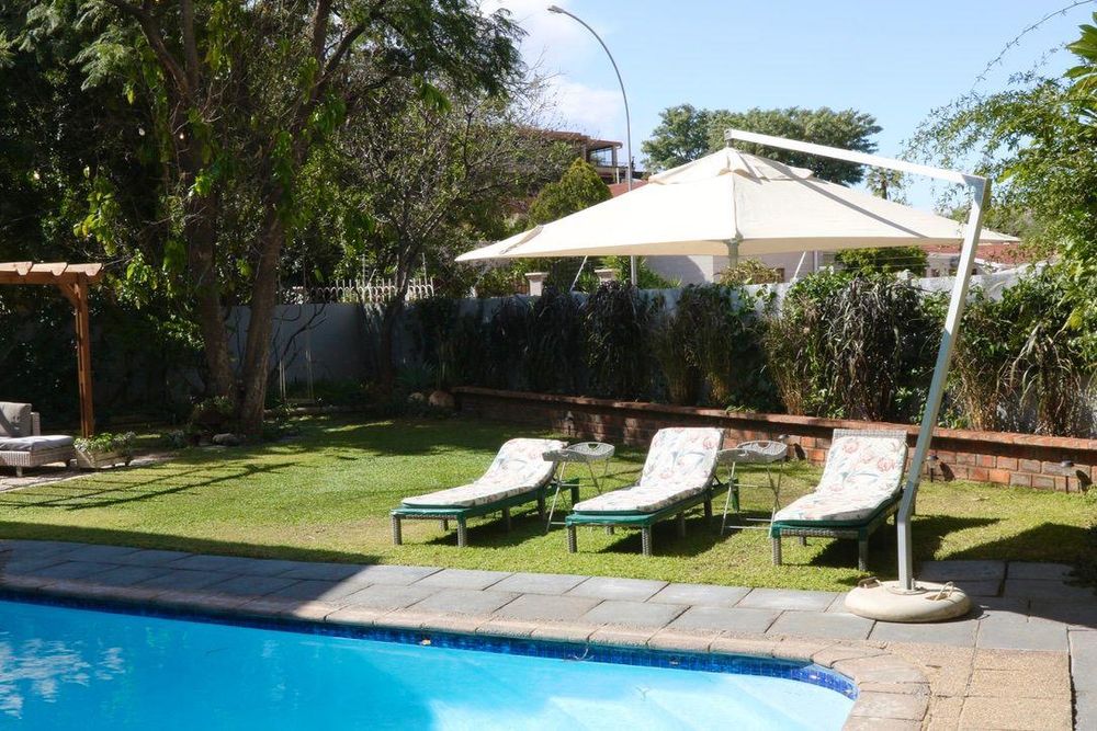 This double storey house has 7 Bedrooms with en-suite bathrooms, the grand main suite with its own private porch, a lounge with a gas fireplace, an open plan kitchen-dining room, an office, a built-in-braai and a guest toilet.