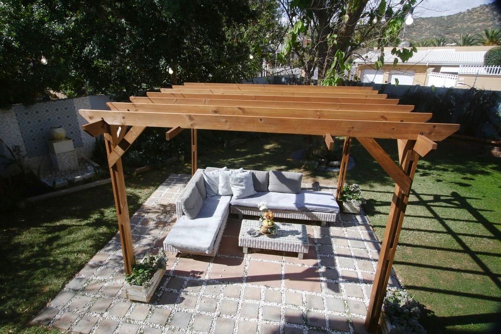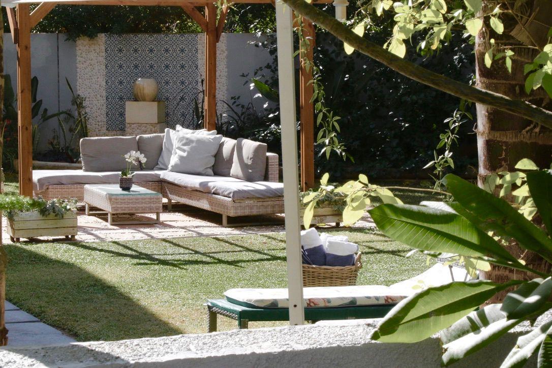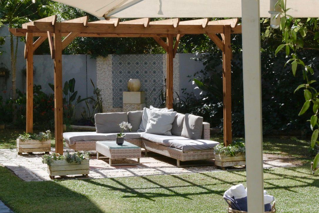 The beautiful, landscaped garden area offers a covered pool, two pergolas, a patio.