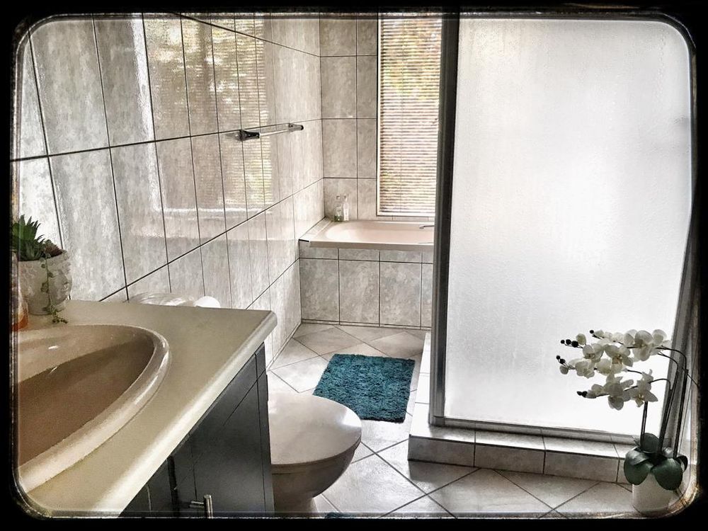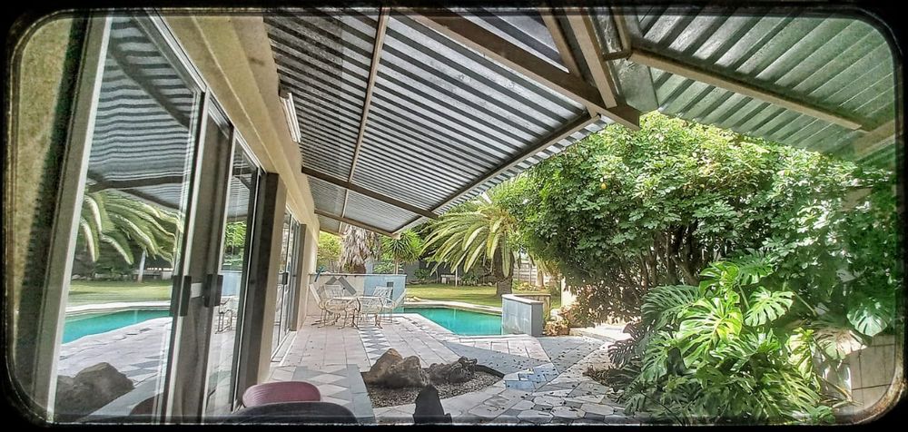 Step outside to find a beautifully landscaped garden with an automatic sprinkler system, providing a lush and inviting outdoor space. Enjoy outdoor dining and gatherings with the built-in braai, or relax by the sparkling swimming pool.
