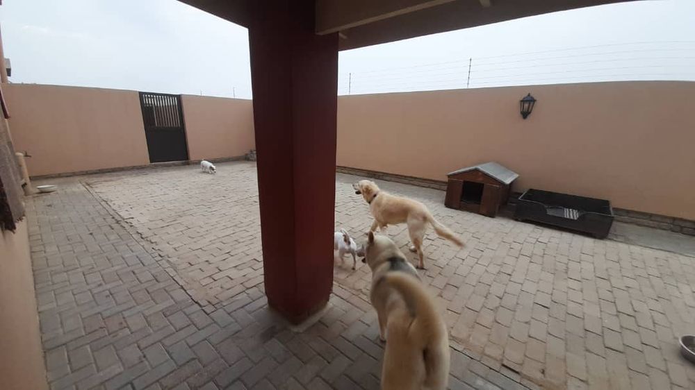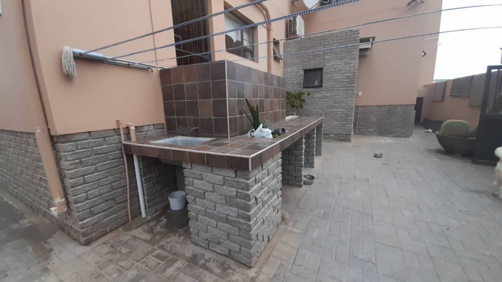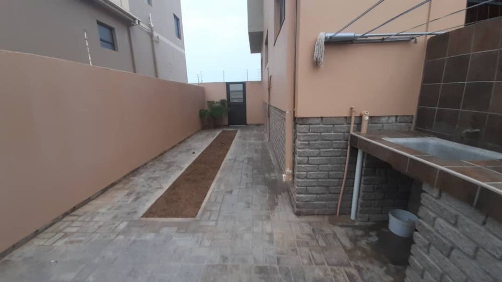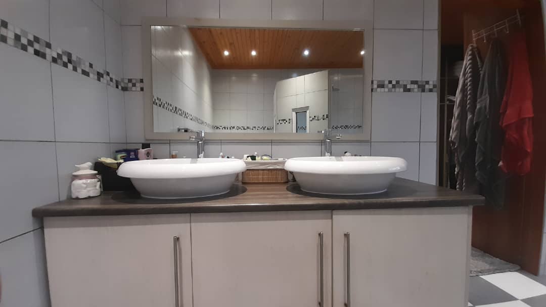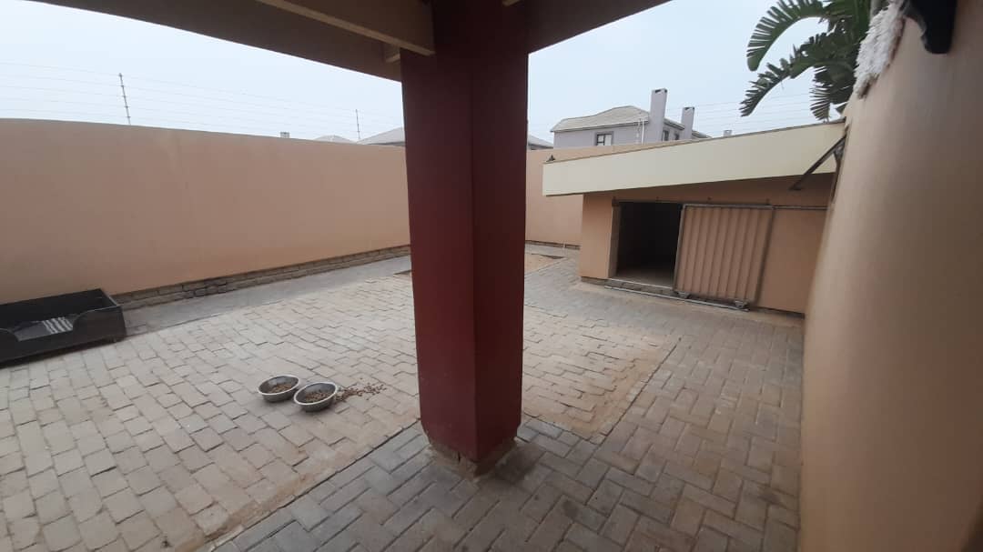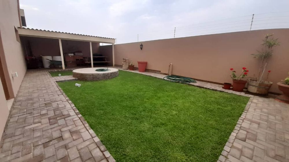 Outside, the property features a servant's toilet, a courtyard, a basin, and a side entrance, as well as a beautifully landscaped garden. For added security and comfort, the house is equipped with an alarm system, burglar bars, and underfloor heating.