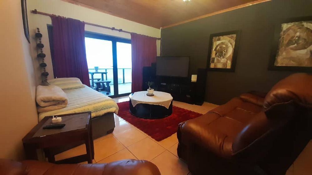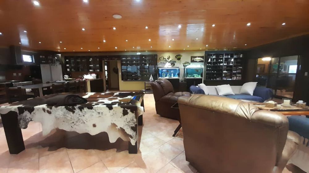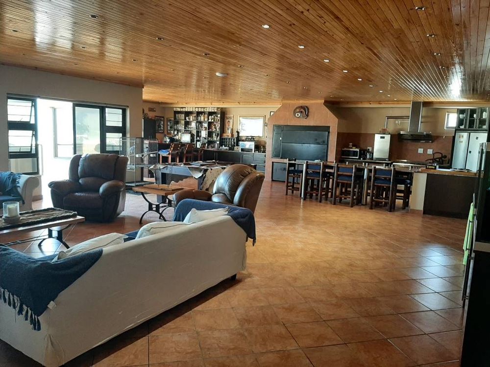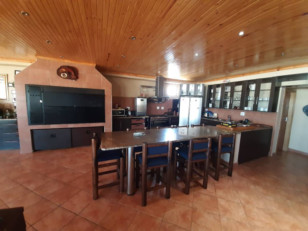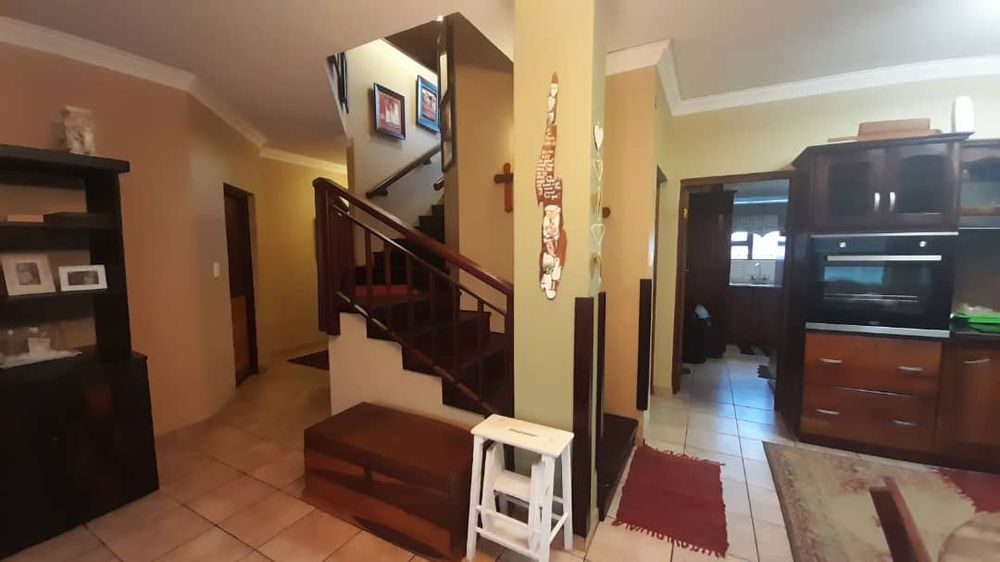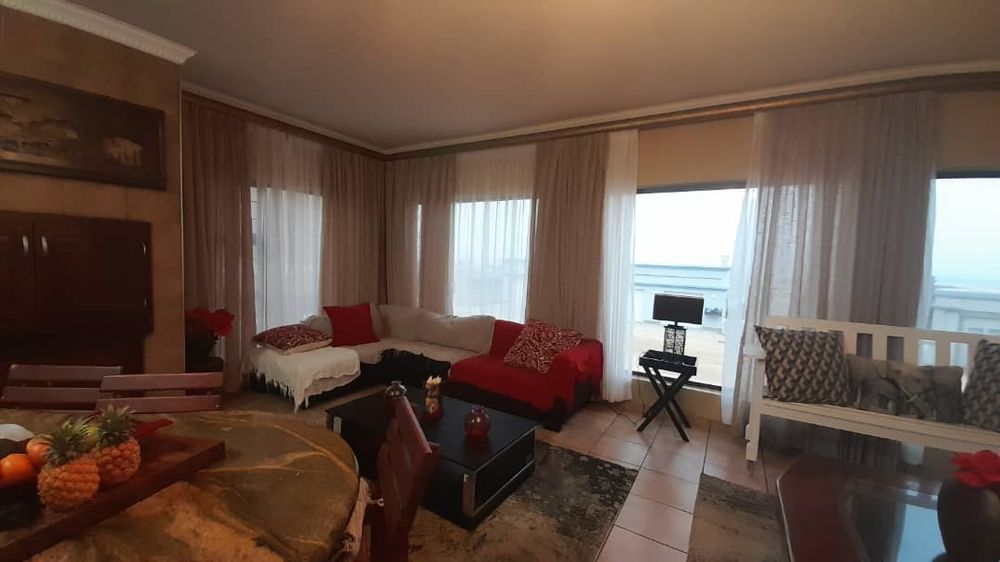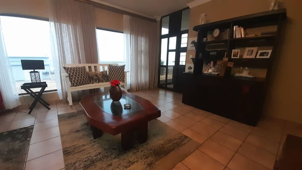 Upstairs, you'll find four bedrooms, two of which boast en-suite bathrooms, along with a study that can easily be converted into a fifth bedroom with its own bathroom. The TV room opens up to an entertainment area with sliding doors that lead to a spacious balcony offering breathtaking sea views. The entertainment area is equipped with a built-in BBQ/SPIT BRAAI, a fitted kitchen, and a bar area, making it perfect for hosting gatherings and enjoying the coastal lifestyle.