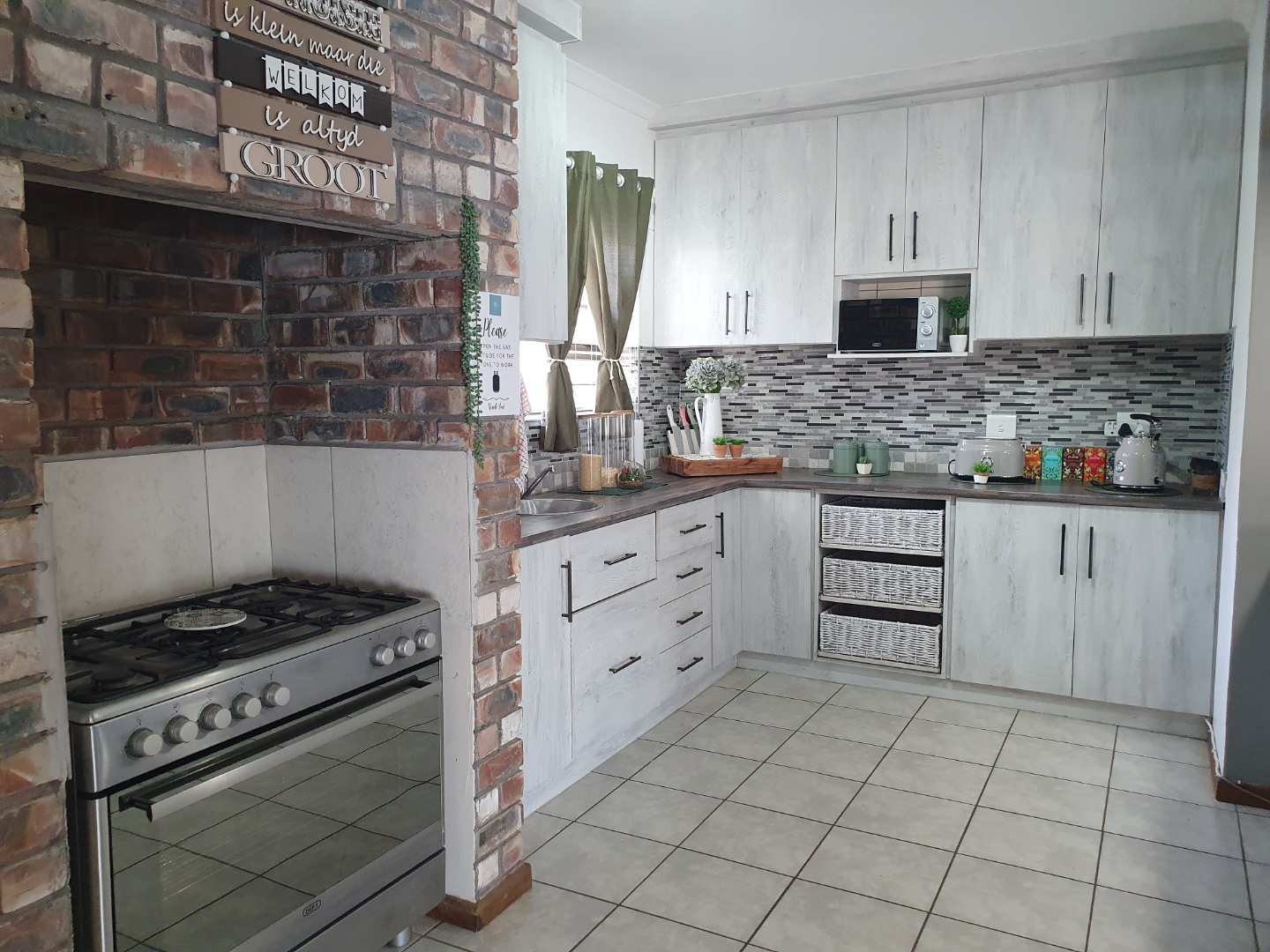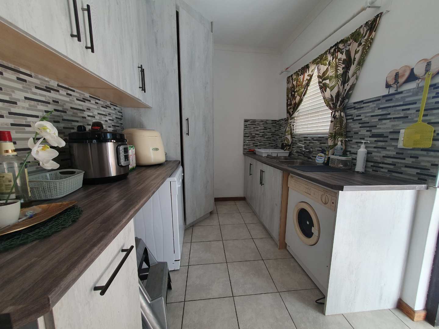 The house is fitted with an alarm system which is linked to a response company. Burglar bars is fitted to the windows.