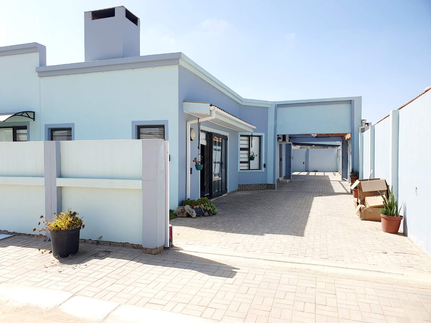The property is totally paved with a small grass and garden area, which makes it easy to maintain. There is also covered parking.