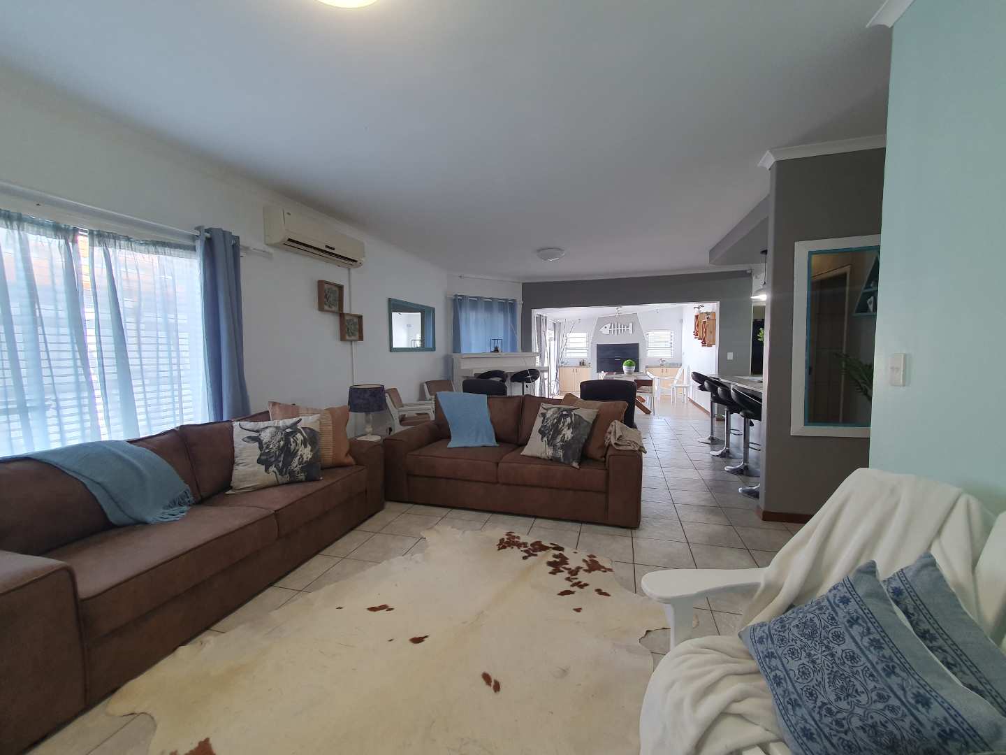 This 220m2 house, offers you 4 bedroom, 2 en-suite, full bathroom, guest toilet, well fitted kitchen, scullery and lounge, with a built-in braai and dining room area. An air conditioner is fitted in the lounge/tv room