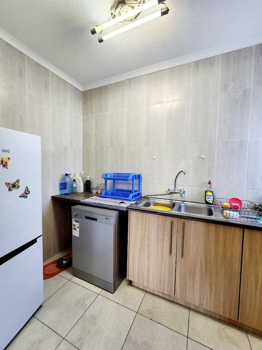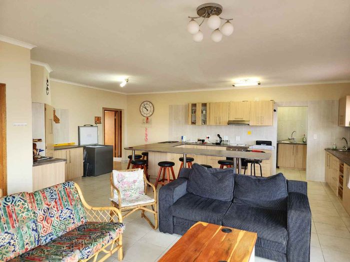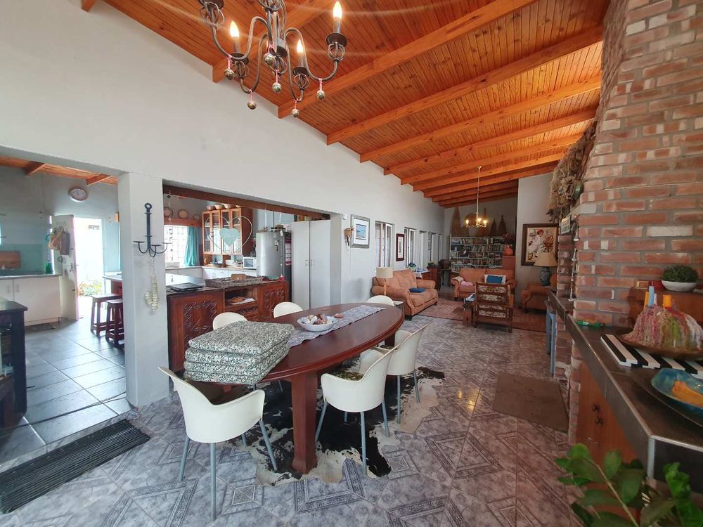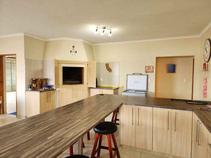 Step into the well-equipped kitchen, which boasts ample cabinetry and provides a functional and inviting space for culinary creativity. Adjacent to the kitchen is the expansive lounge and dining area, complete with a built-in braai, making it an ideal spot for entertaining family and friends all year round.