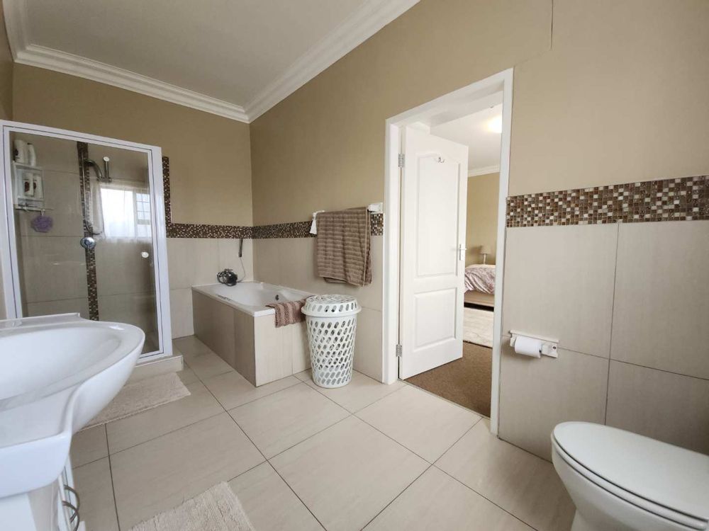 This delightful corner property boasts four generously sized bedrooms, including a main en-suite, and three modern bathrooms designed with both comfort and style in mind. Practicality is further ensured with a separate scullery/laundry room. The home also features direct access to a large double garage, complete with an additional storeroom and an exterior toilet.