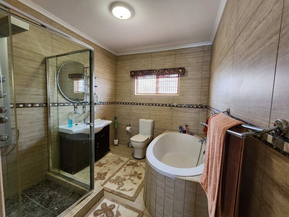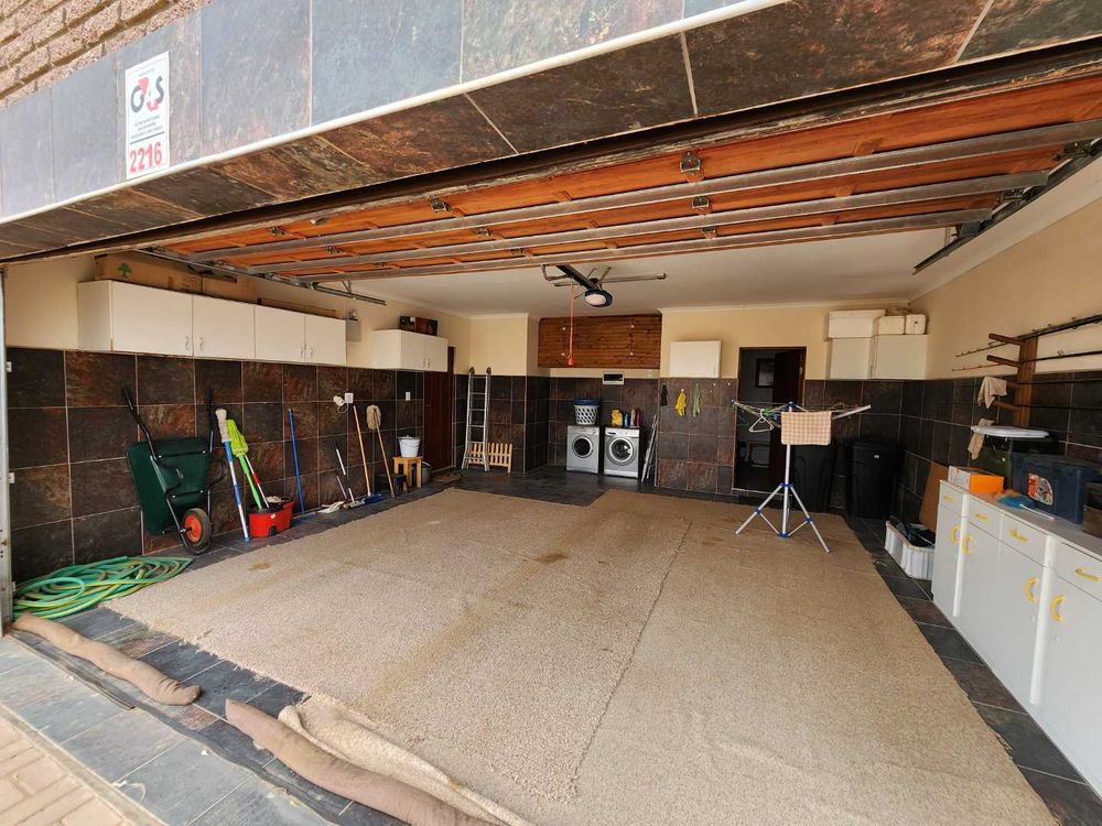 Situated on an erf of 686 m2, the fully interlocked yard makes this property an ideal lock-up-and-go residence. Security features include an alarm system and automated garages, providing peace of mind.