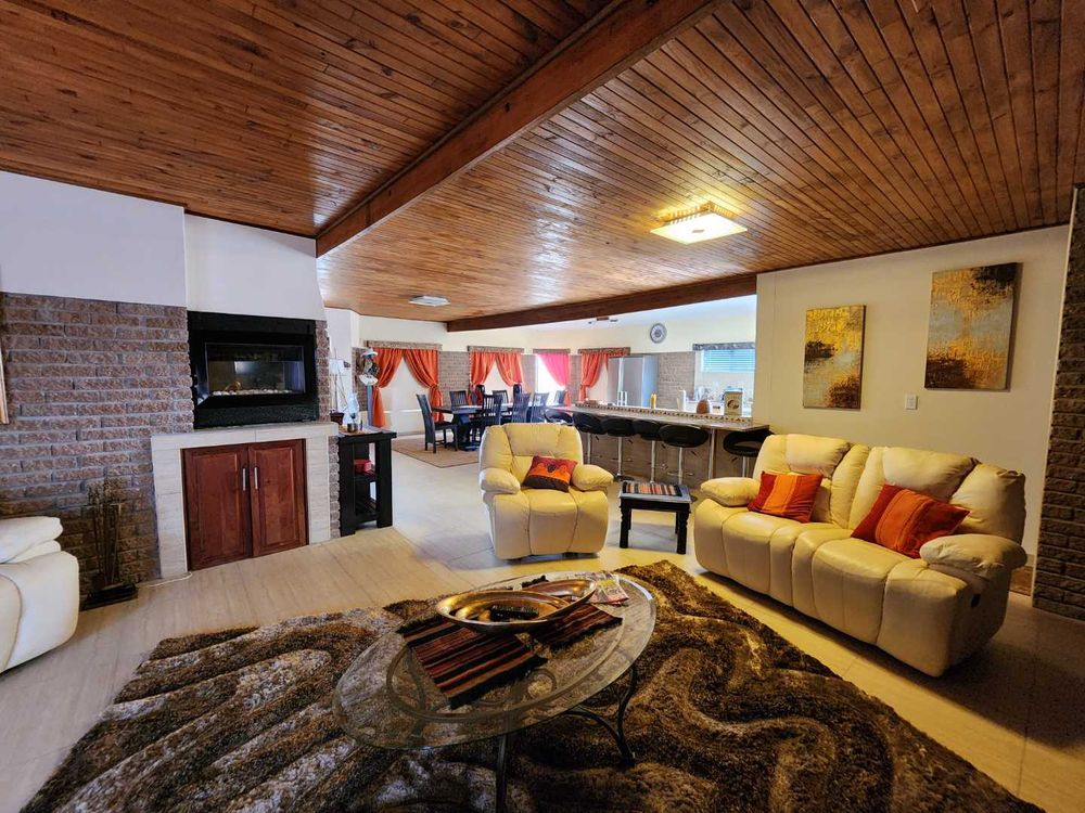 Welcome to this remarkable property nestled in the heart of Henties Bay Central, offering the perfect blend of comfortable family living and lucrative rental potential. Priced at N$2,800,000, this low-maintenance face-brick home, complemented by a separate flat, promises convenience and style.