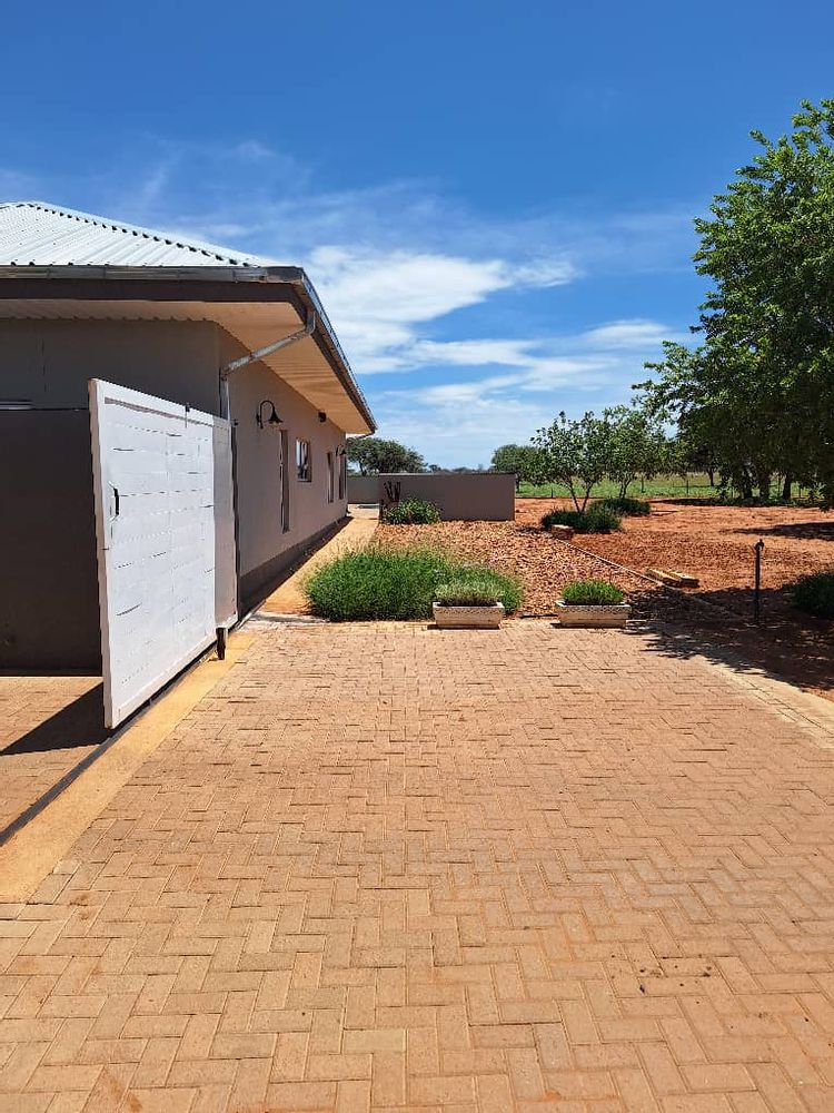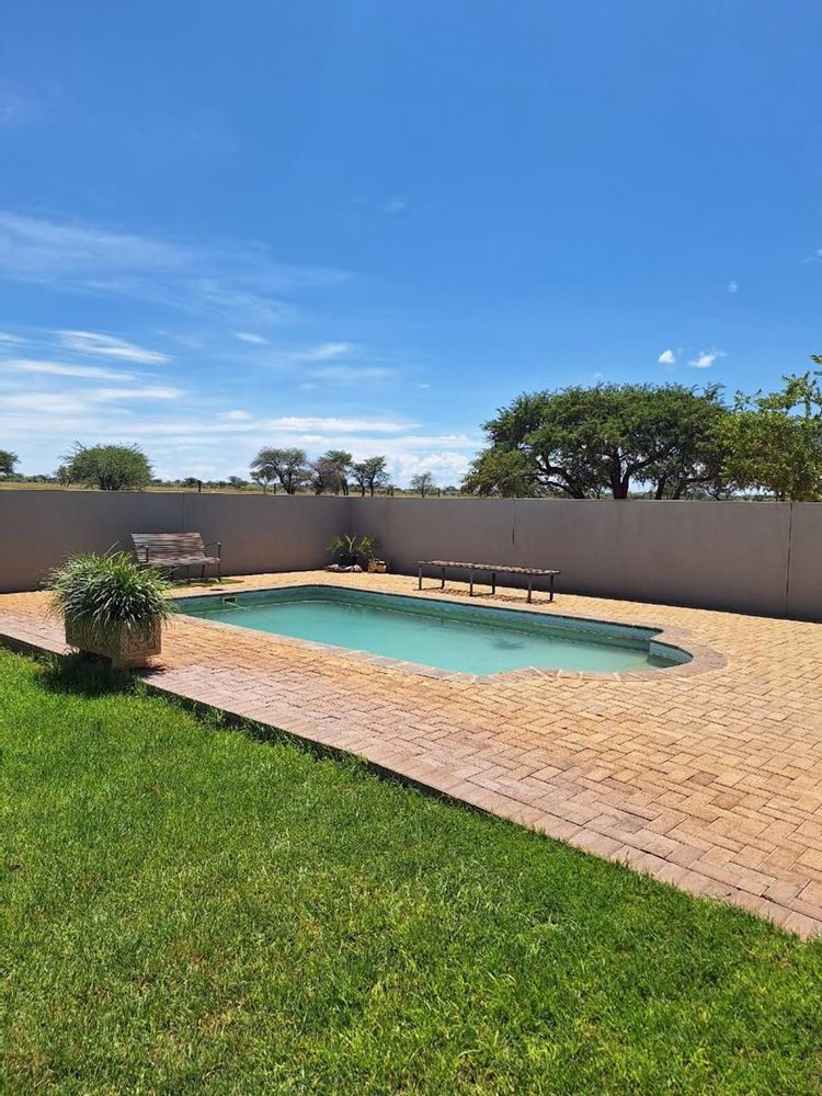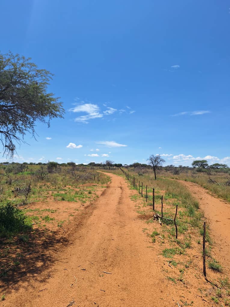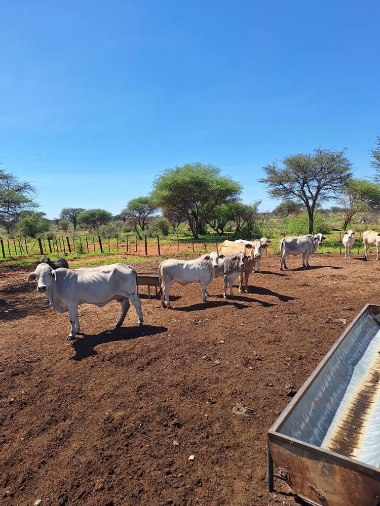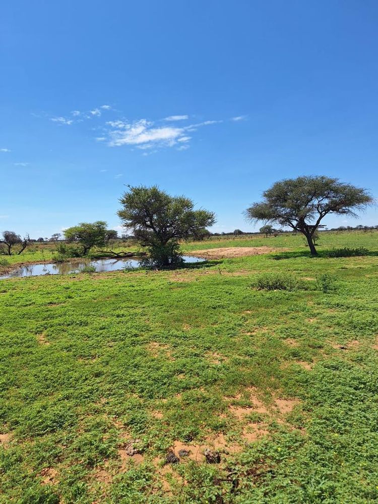 The land features sand and lime ground, supporting diverse grazing types such as Buffalo Grass, Blackfooted Brachiaria, Bushmen Grass, Schmidtia Grass, Meerjarige Beesgras, Anthephora, Rosyntjiebos, Wag-'n-Bietjie, Kampferbusch, Shepherd’s Tree, Camel Thorn, and Acacia.