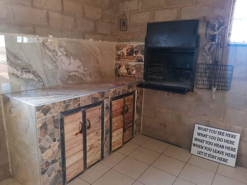 While the sale does not include movable assets, livestock, or game, the property boasts significant infrastructure. The farm features several conventional brick and mortar structures, including a spacious main dwelling of 225m2 and an 85m2 covered stoep. Additional facilities include garages/stores (128m2), an electrical/generator room (10m2), and a laundry with a WC (19m2). The property also includes a 103m2 shed, a newly constructed entertainment area (108m2) currently at 55% completion, a new store/garage (97m2) also at 55% completion, a partially completed new dwelling (175m2 at 25%), and a new warehouse/stores (198m2).