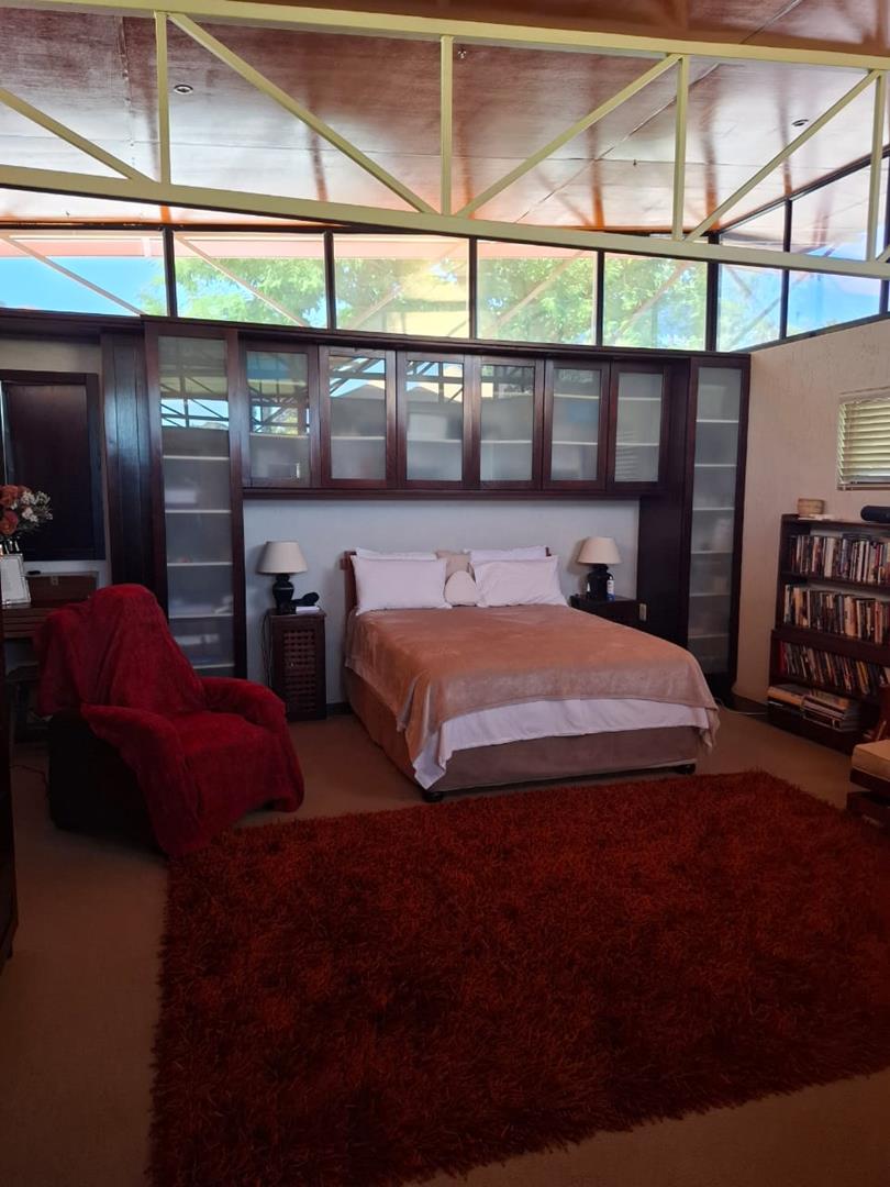 The property is further enhanced by practical features such as garages totaling 80 sqm, storerooms, a laundry room, and a sparkling swimming pool. Security is paramount with electrified boundary walls and an alarm system. Additional comforts include air conditioning and an off-grid solar electricity system with approximately four batteries, ensuring energy efficiency and sustainability.