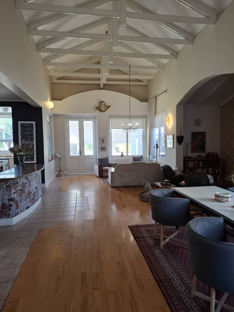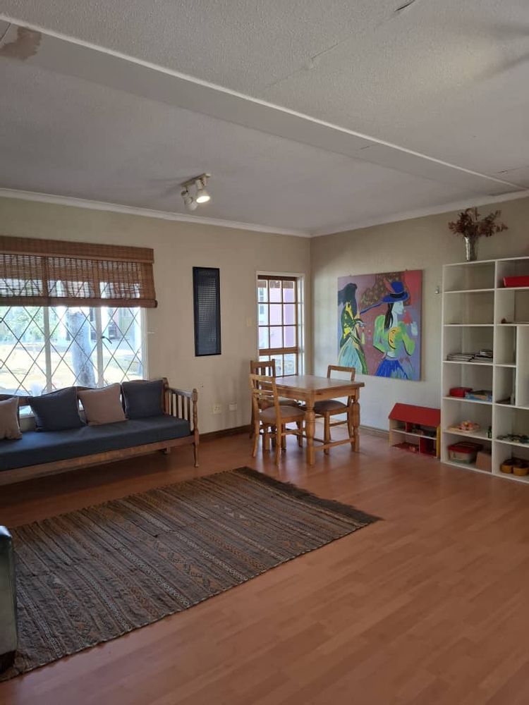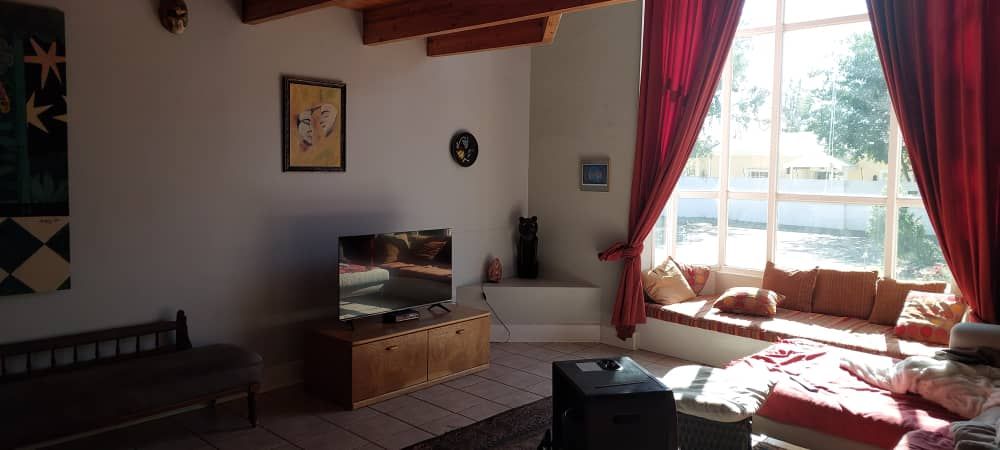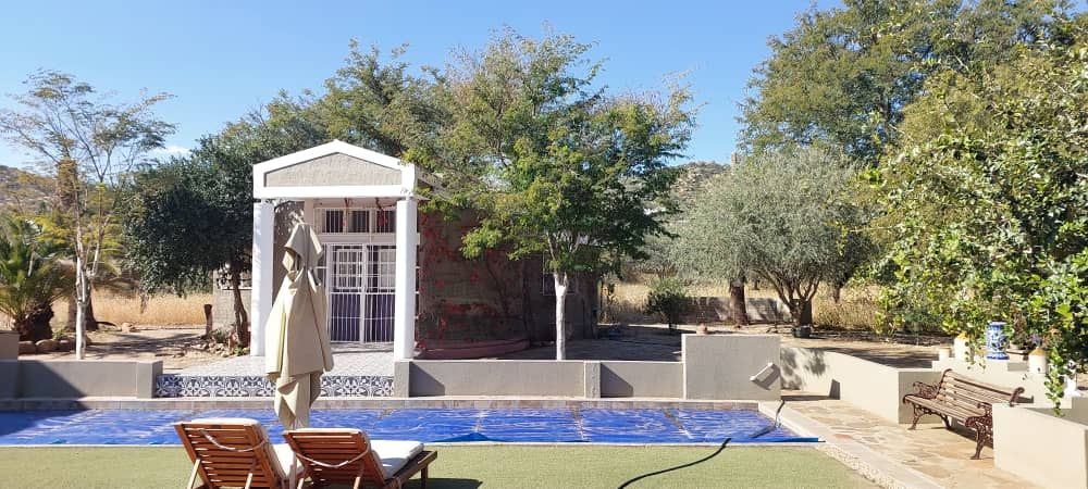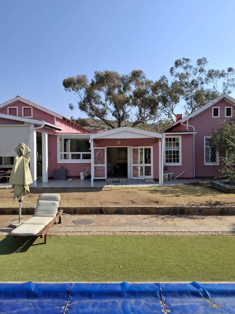 The expansive main building welcomes you with an inviting entrance area. Enjoy the seamless flow from the lounge with a mezzanine to the family room, dining room, and kitchen. The functional layout includes a study, strong room, hobby room, and pantry. Two bedrooms offer comfort and privacy, with one featuring an en-suite bath-shower-toilet and another shower-toilet for added convenience.