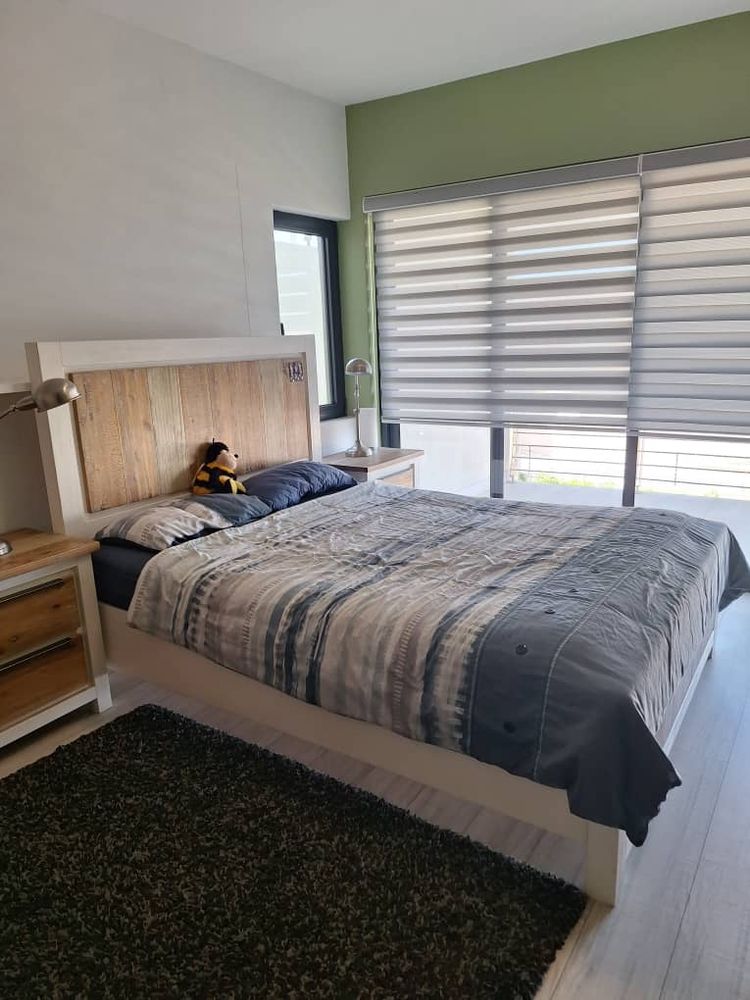 The property features three bedrooms with two en suite bathrooms, a versatile store room located under the stairs, providing ample space for storage needs. Another room, currently used as a hobby room can be transformed into a fourth bedroom. Safety and comfort are paramount, with shatterproof glass installed throughout the house, complemented by bug screens or fly nets to ensure peace of mind.