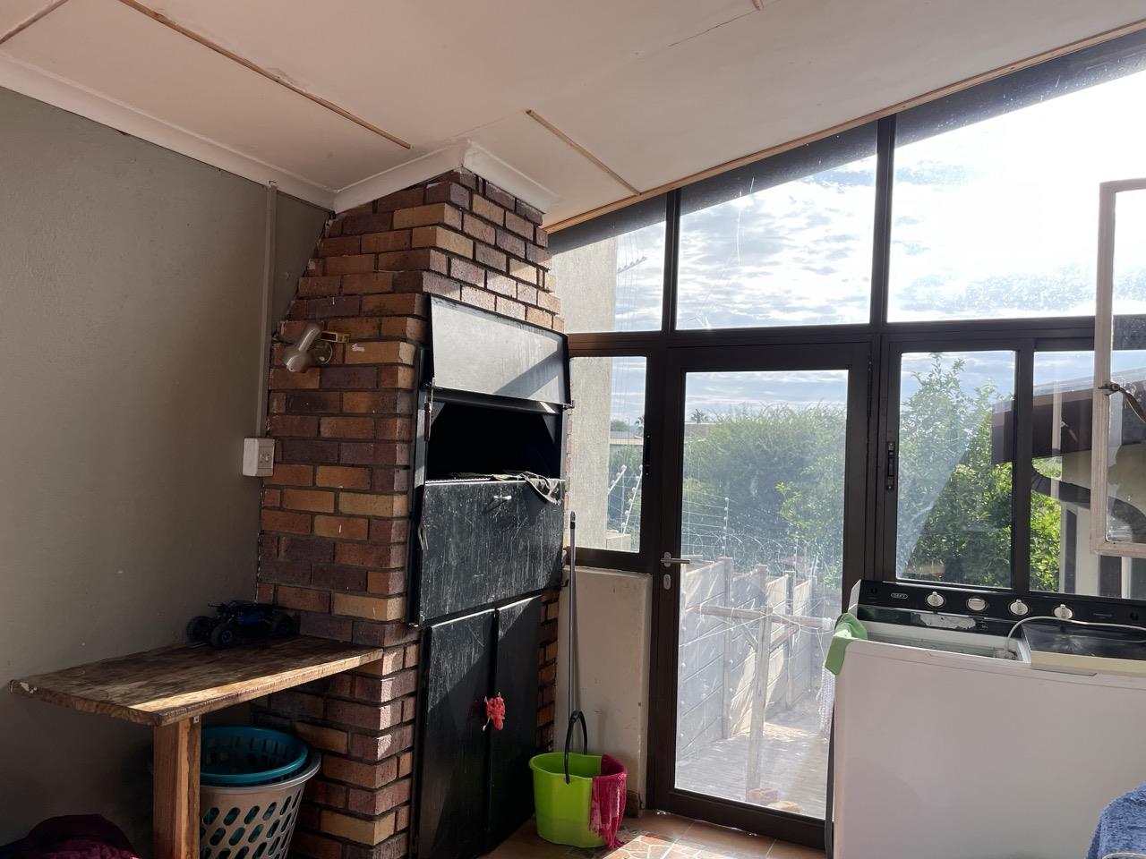 This property is perfect for first time buyer and offers an open plan lounge, dining and kitchen with BIC. A braai area, scullery and 3 bedrooms and two bathrooms. Double Garage, shaded parking and interlocked back yard. The flat consists of a kitchen with BIC and BIS, 1 bedroom with BIC and 1 bathroom.