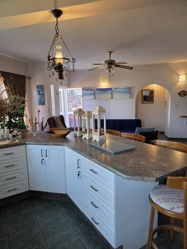 On the main level, discover a generously sized kitchen perfect for culinary endeavors, seamlessly flowing into an inviting living room equipped with a built-in braai—ideal for entertaining guests or enjoying cozy family gatherings. Adjacent to the kitchen, you'll find a practical scullery and laundry area, ensuring convenience in your daily routines.
