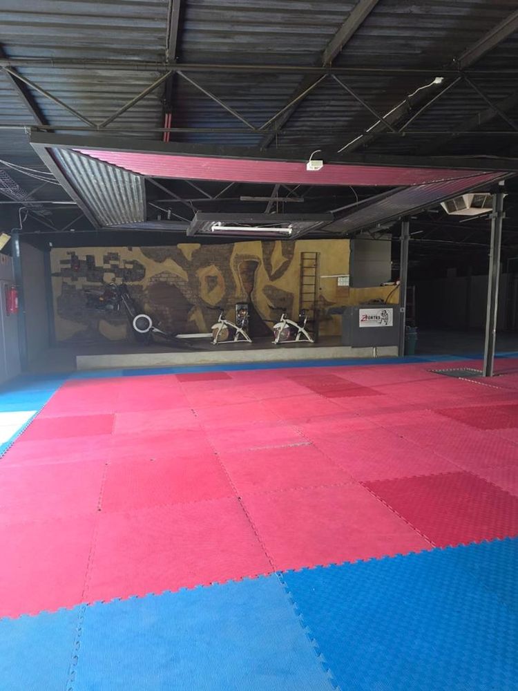 The main building features a versatile gym/function area, a comfortable sitting and eating space, a well-appointed bar area, and a fully equipped kitchen. It also includes a walk-in safe, modern ablution facilities, an office, and a convenient storeroom. A second section of the building offers additional amenities such as game rooms, sauna areas, further ablution facilities, a computer room, and extra storerooms.
