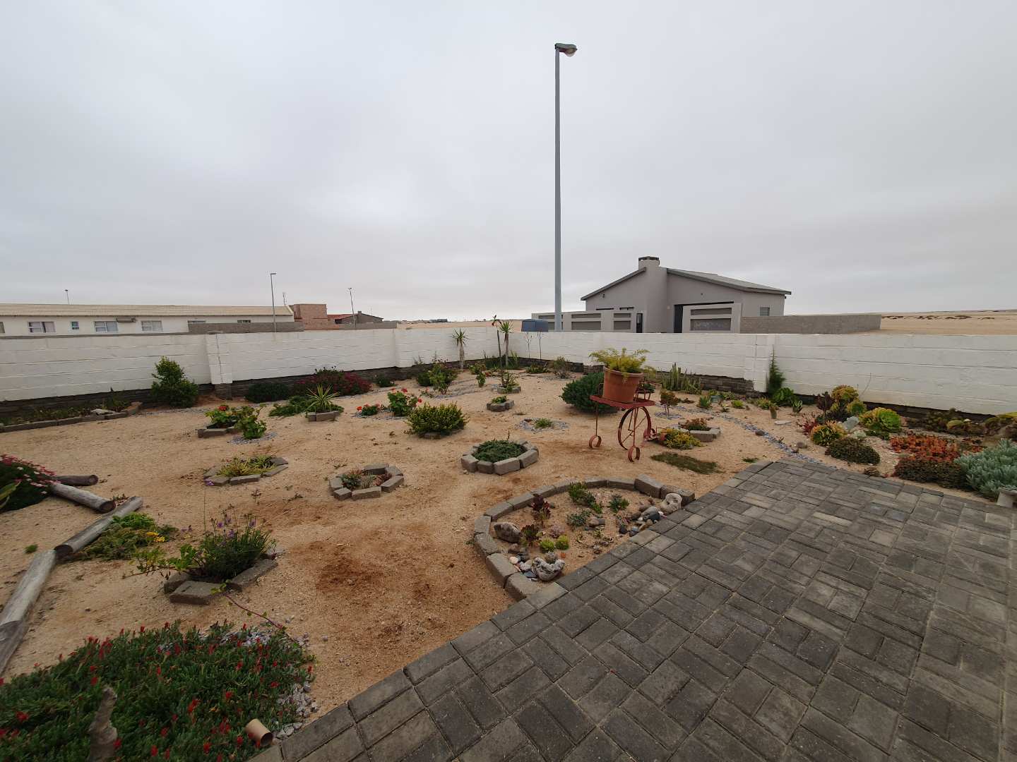 The small garden is planted with typical plants that can survive the climate in Henties Bay.