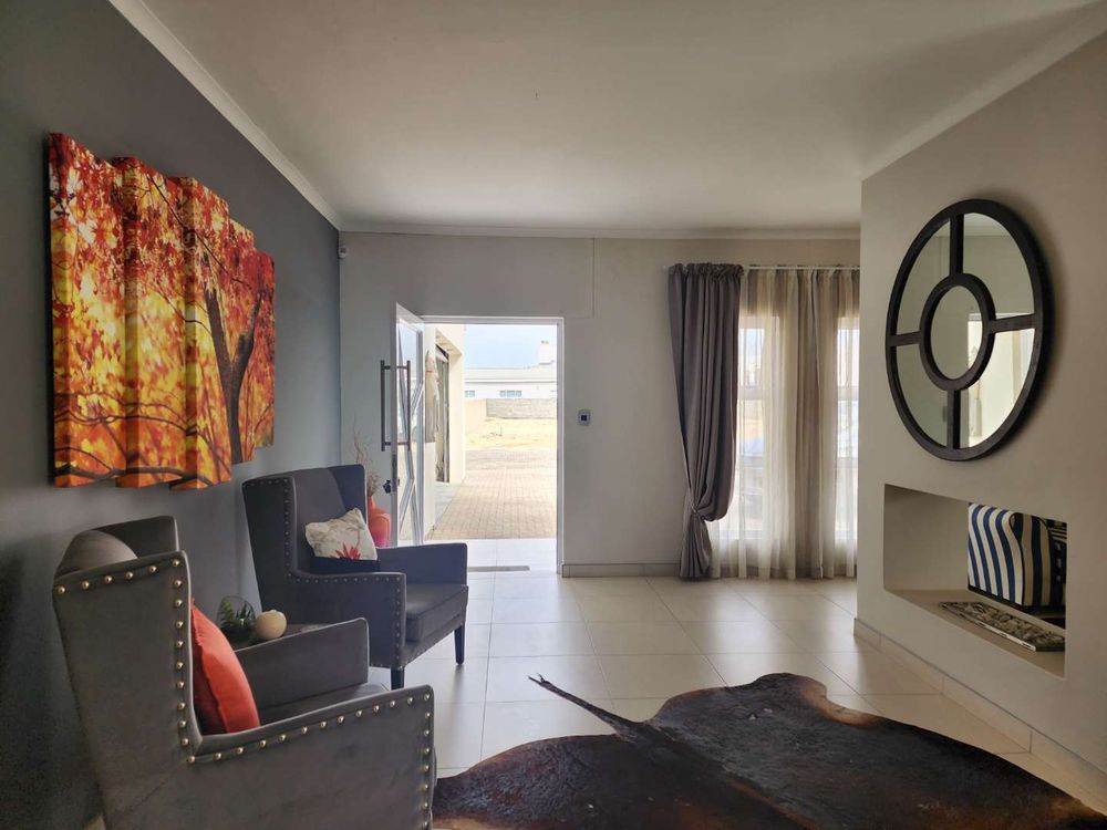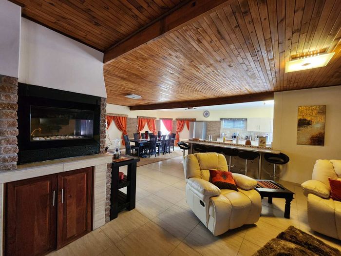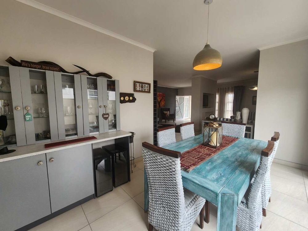 Welcome to this beautiful family home, perfectly designed for comfort and entertainment. Nestled on a charming cobbled street, this property promises a lifestyle of ease and enjoyment, offering a spacious open plan living area that seamlessly integrates the kitchen and dining room. At the heart of the living room, a centrally located gas heater provides warmth and ambiance, while both the dining area and kitchen are equipped with indoor braai facilities, making it an ideal setting for hosting family gatherings.