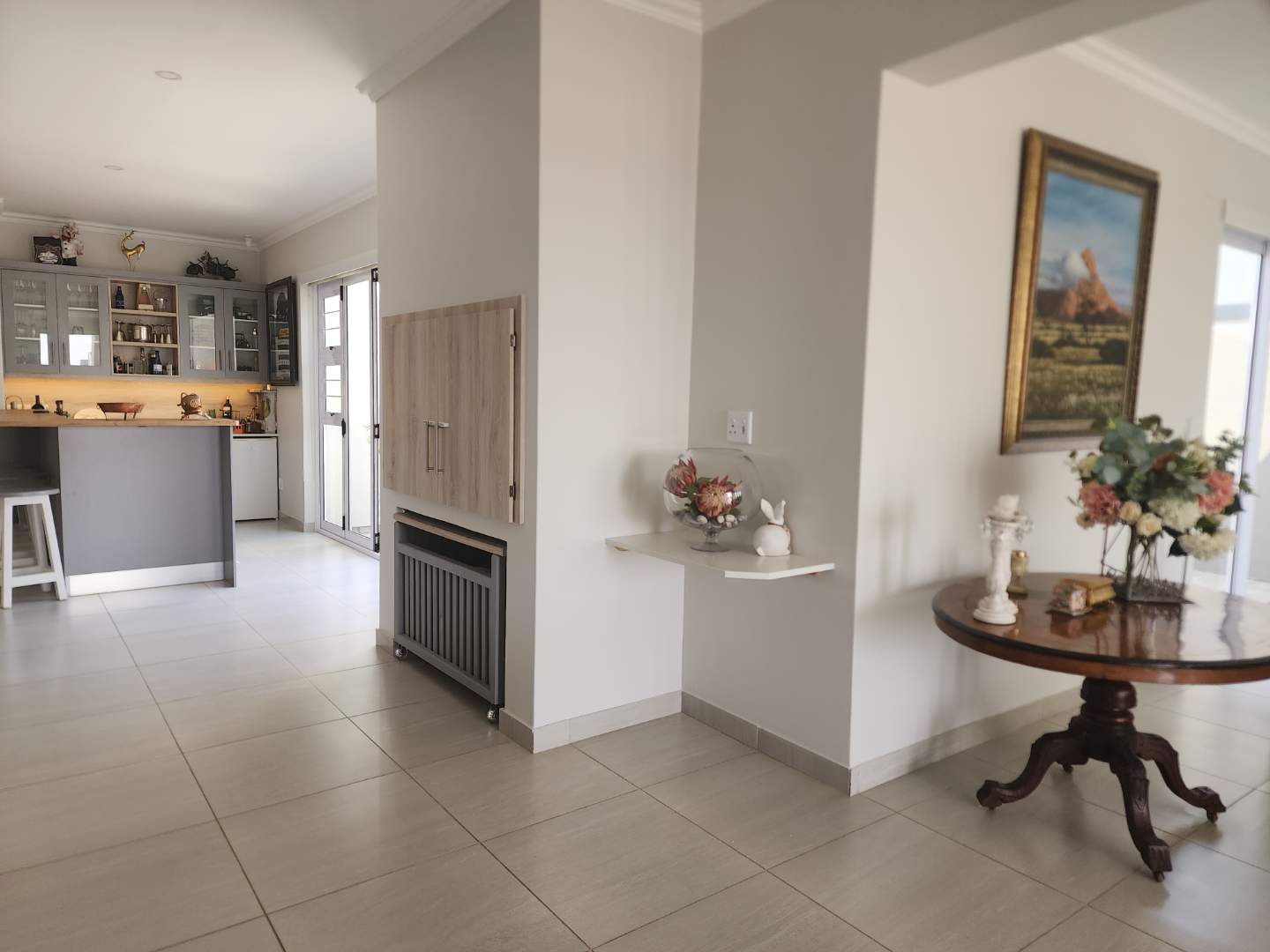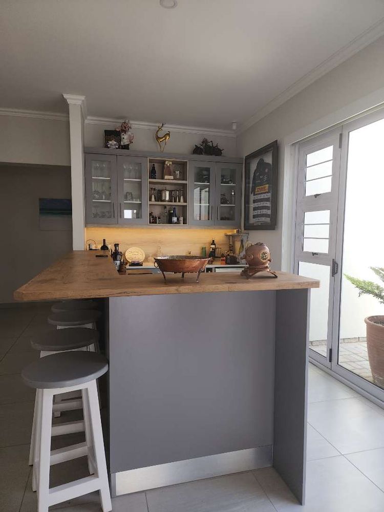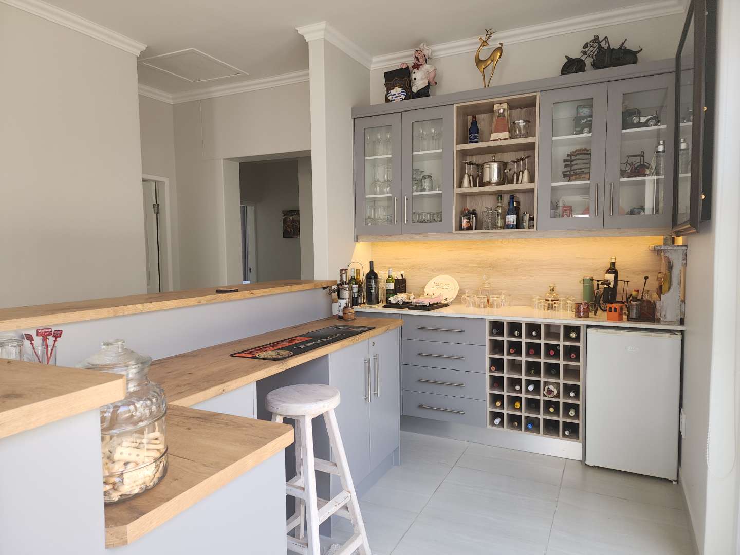 Upon entering, you are greeted by a well-fitted kitchen complete with a separate scullery, providing ample space for culinary exploration and entertaining. The open-plan living area is expansive, offering a built-in braai perfect for hosting gatherings, while a built-in bar adds an element of sophistication for your social events.