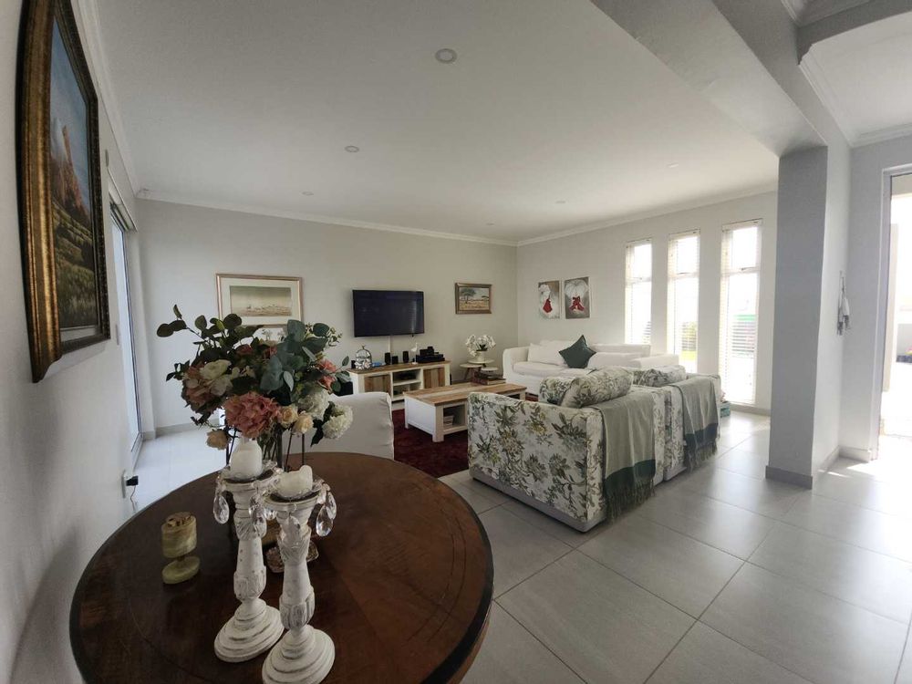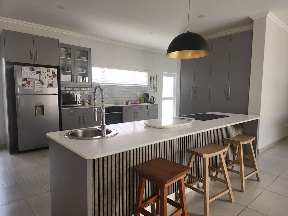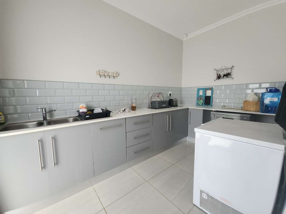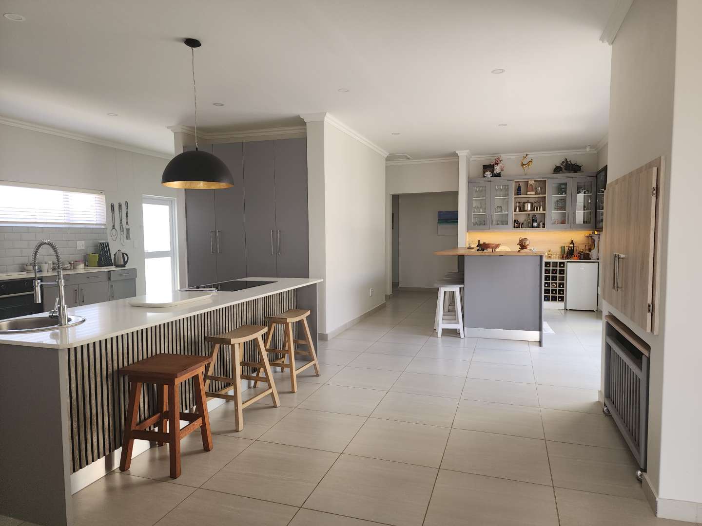 Upon entering, you are greeted by a well-fitted kitchen complete with a separate scullery, providing ample space for culinary exploration and entertaining. The open-plan living area is expansive, offering a built-in braai perfect for hosting gatherings, while a built-in bar adds an element of sophistication for your social events.