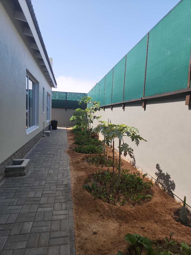 Step outside to discover an inviting outdoor braai area, ideal for enjoying meals with family and friends in the fresh air. The property includes a small, easy-to-maintain garden complemented by a few fruit trees, adding a touch of nature and tranquility to your surroundings.