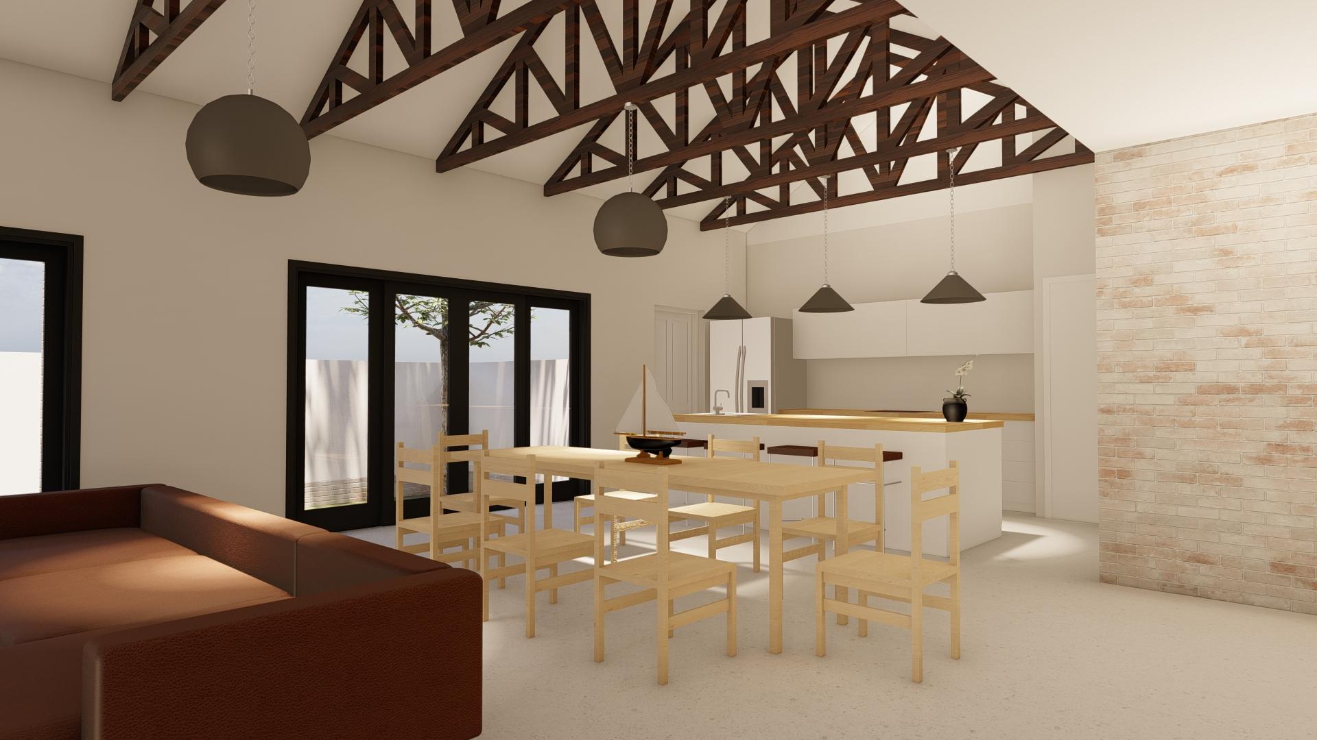 Additional features include a dedicated study, ideal for remote work or as a quiet reading nook, and a guest toilet for visitors' convenience. The home also offers the unique charm of roof open trusses, adding an architectural flair to the interior design.